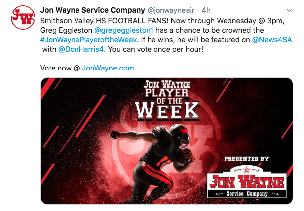 After his performance in tje 44-0 romp over Madison Thursday night, senior Greg Eggleston stands to be voted Jon Wayne Player of the Week.