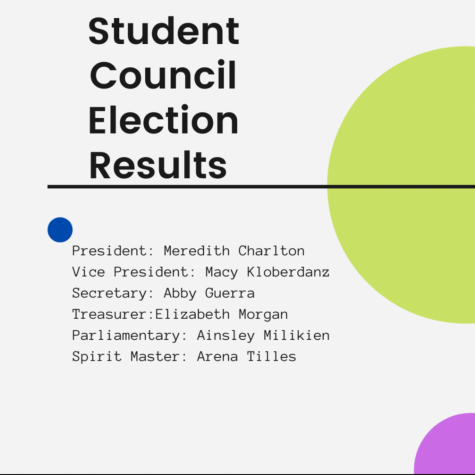 For student council there is Meredith Charlton as president, Macy Kloberdanz as vice president, Ainsley Milikien as parliamentary, Abby Guerra as secretary, Elizabeth Morgan as treasurer, and Brennan Tiller as spirit master.