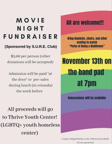 On Nov.13, S.U.R.E Club is putting on a movie night at 7 p.m on the band pad. Attendees are encouraged to bring chairs and blankets, and the featured film is “The Perks of Being a Wallflower.” Tickets are $5, and all proceeds from tickets and concessions will benefit Thrive Youth Center in San Antonio.