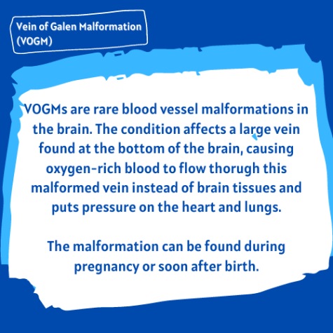 At six months old, I was diagnosed with the Vein of Galen brain aneurysm, which causes excessive spinal fluid to leak into the brain, putting me at risk for severe neurological damage. Doctors usually solve this issue with a shunt that drains fluid into the stomach.