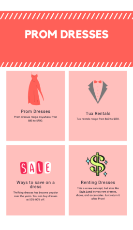 With the costs of prom adding up with shoes, makeup, nails, transportation, prom tickets and prom-posals, thrifting prom dresses has become quite popular. When thrifting prom dresses, they can be purchased at 50% to 80% off. Another option for people looking to get budget-friendly prom dresses is Style Lend and Rent the Runway. These sites offer a dress/ tux rental service. After paying a small fee, you can rent a dress or tux, shoes, and accessories. This option is easier,more affordable, and better for the environment.