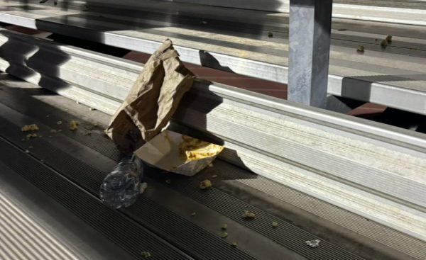 Water, soda, popcorn and nachos are just the basics of what is left behind when the football bleachers clear for the night. After games in Ranger Stadium, stands are left littered in trash and food scraps.