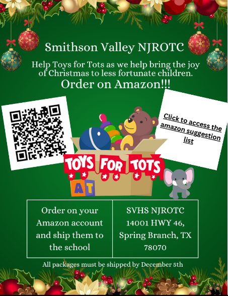 Additionally, students can deliver toys directly to the NJROTC classroom in lower c-wing.