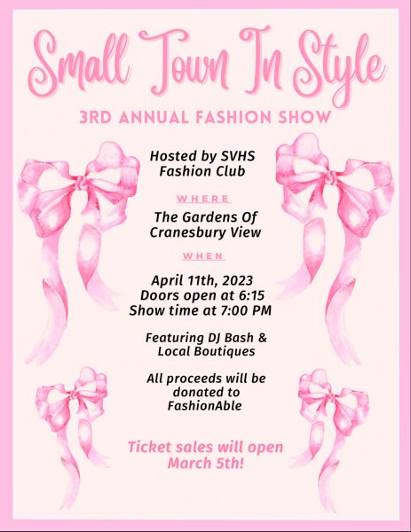 The fashion club will host its annual fashion show on Wednesday at The Garden of Cranesbury View at 7 p.m.