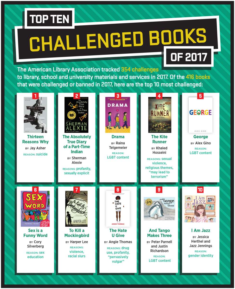 “To Kill a Mockingbird” ranks No. 7 on the Top 10 Most Challenged Books of 2017, according to the American Library Association. ALA sponsors Banned Books week this week.